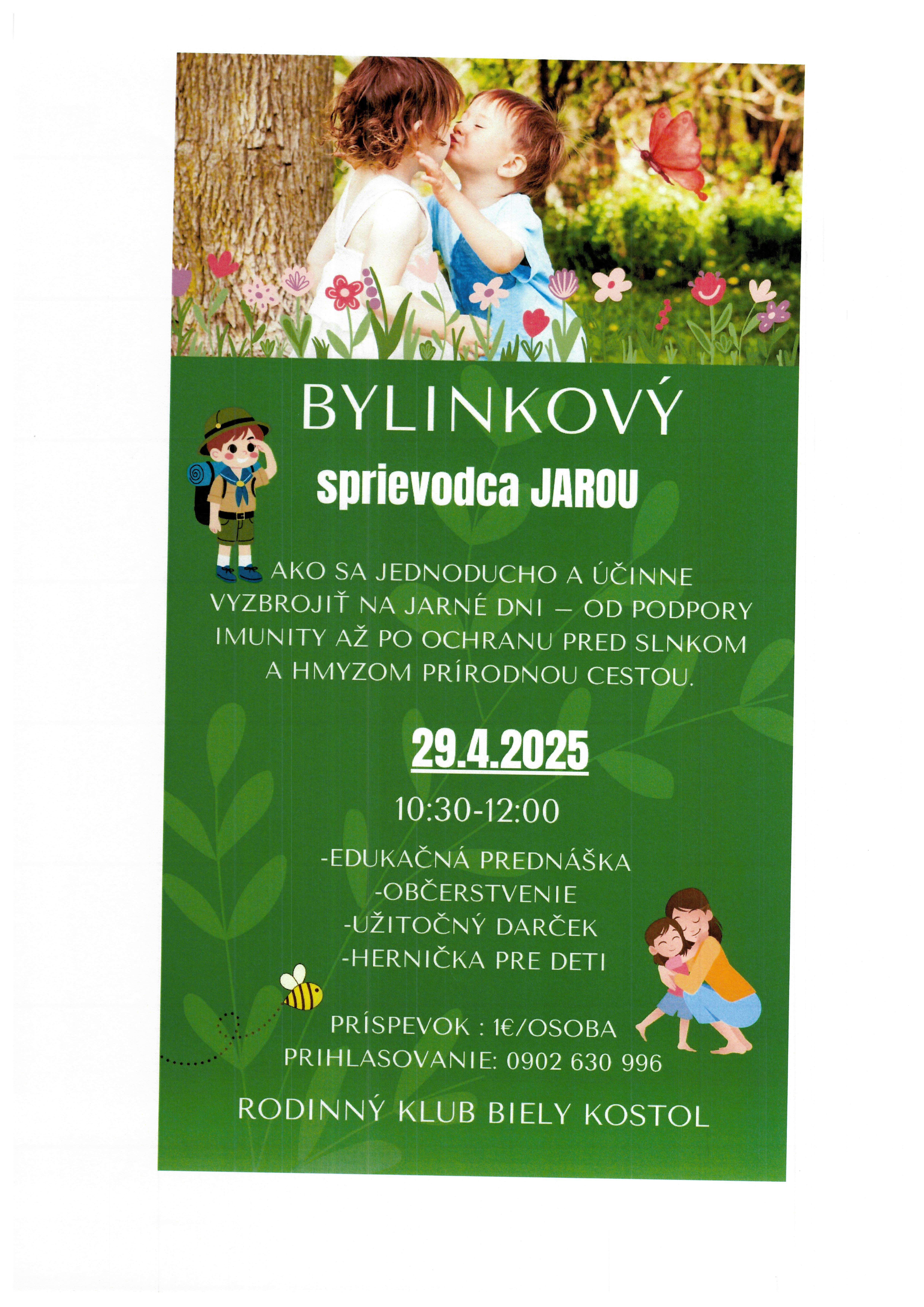 Rodinný klub Biely Kostol Vás pozýva dňa 29.4.2025 v čase od 10.30 do 12.00 na edukačnú prednášku. Viac informácii v plagáte.