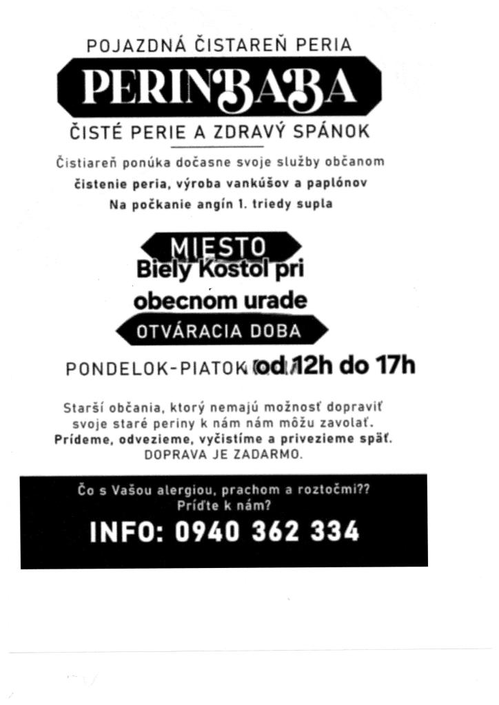 Z prevádzkových dôvodov bude čistiareň otvorená až v utorok 17.6.2025 .