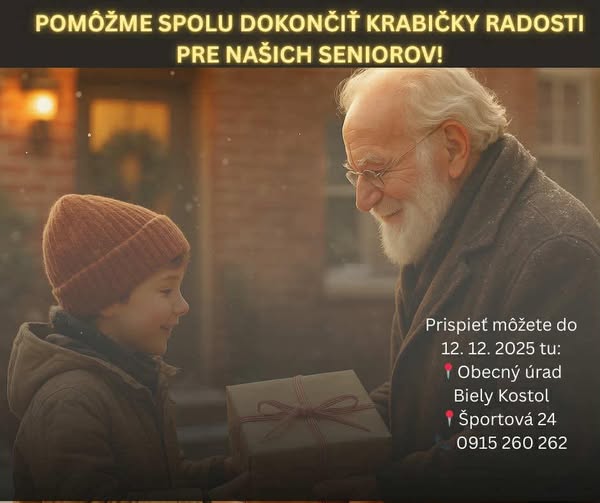 Každá drobnosť- čokoláda, káva, mydlo, pomôžeš, voňavá sviečka, knižka či krížovky- pomáha vyskladať balíčky, ktoré pred Vianocami potešia seniorov z našej obce. Krabičky im budú odovzdávať bielokostolské deti.