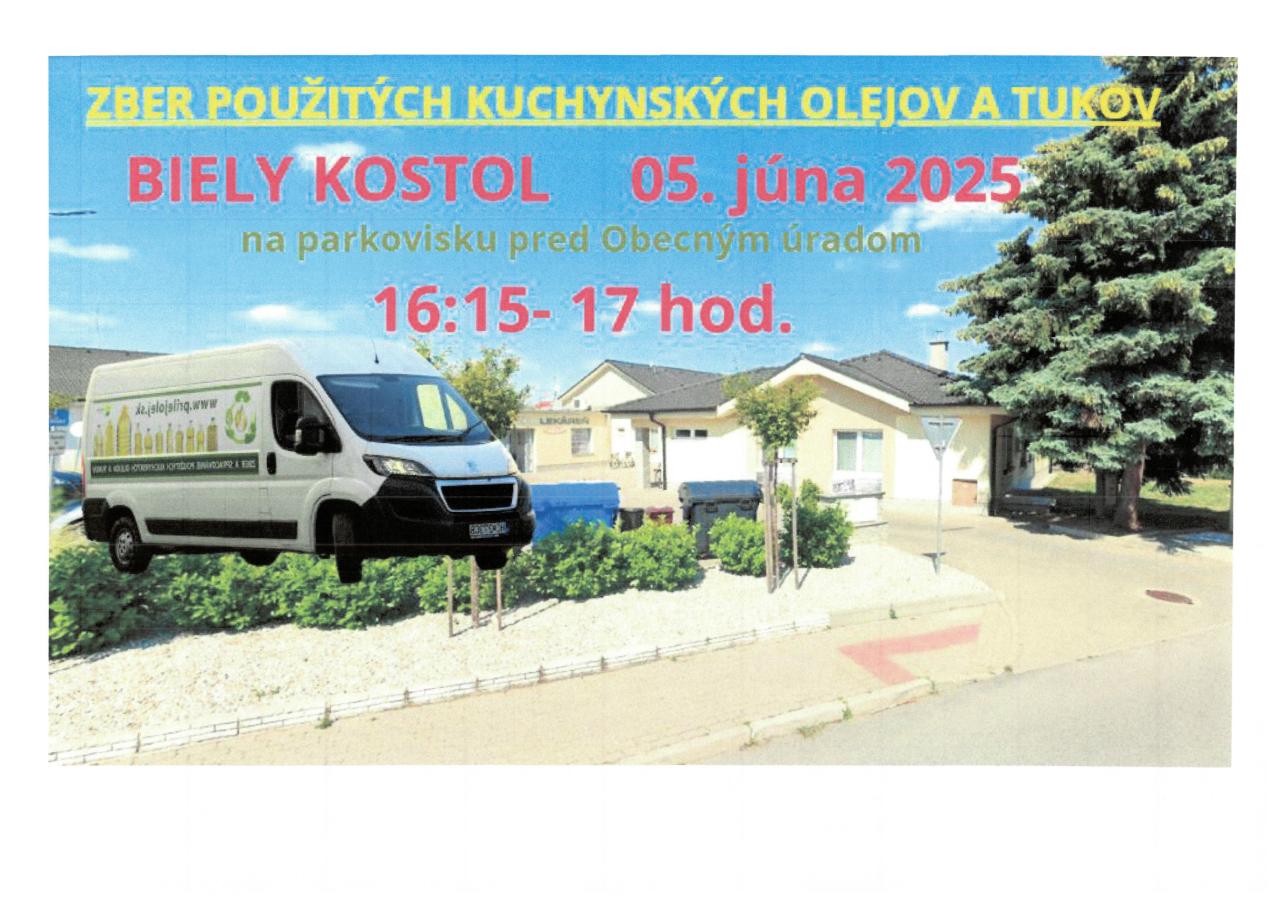 Spoločnosť MEROCO bude vo štvrtok 05.06.2025 preberať použitý kuchynský olej priamo v našej obci pred obecným úradom na Pionierskom námestí 18 od 16:15 do 17:00 hod.