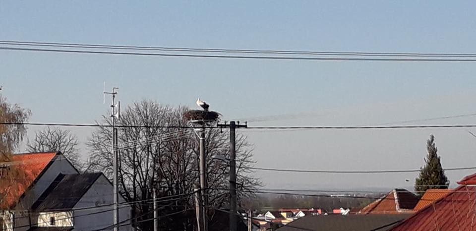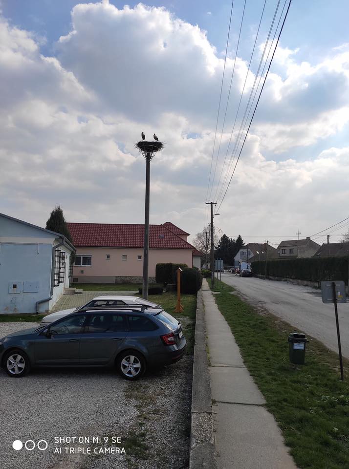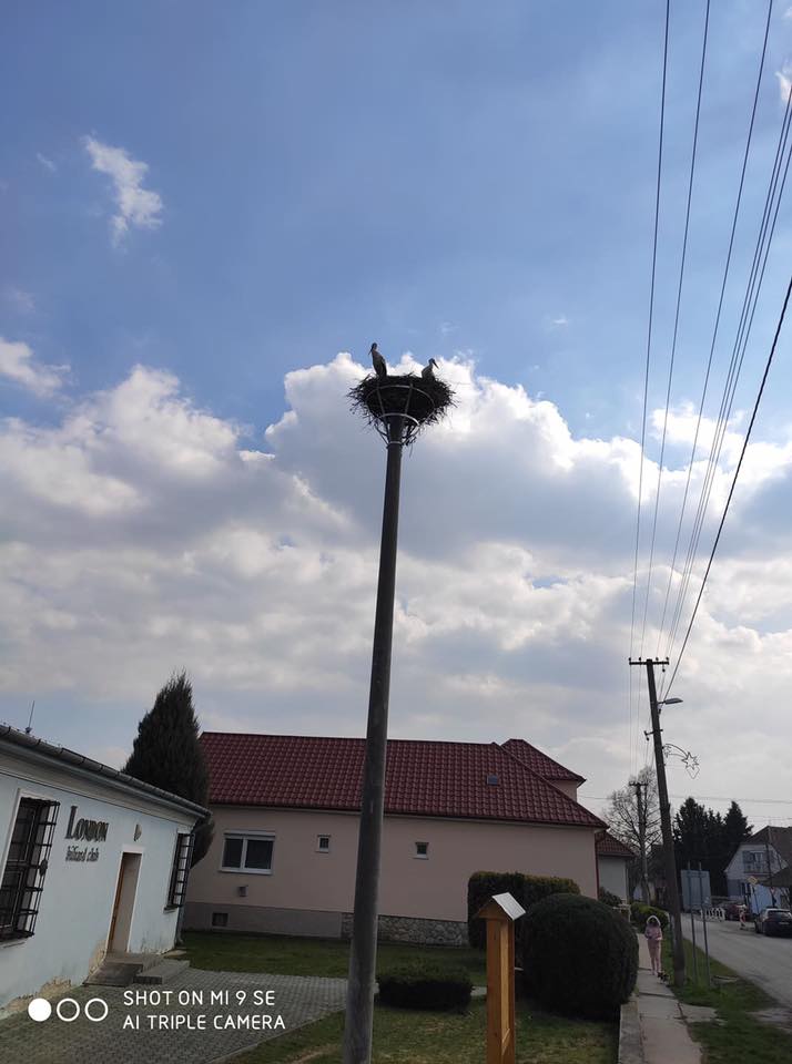 Včera sa v našej obci po roku opäť objavil bocian a dnes k nemu priletela aj jeho družka. Tento párik sme očakávali s nedočkavosťou už niekoľko dní. Z dôvodu nebezpečného miesta, na ktorom si minulý rok postavili hniezdo, bolo potrebné hniezdo premiestniť. Pred pár dňami v spolupráci so ZSE a ochranármi sa osadil neďaleko betónový stĺp, na ktorý sa pripevnila konštrukcia, na ktorú sa žeriavom prenieslo pôvodné minuloročné hniezdo.