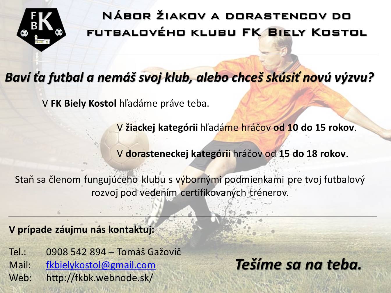 Nábor žiakov a dorastencov do FK Biely Kostol.