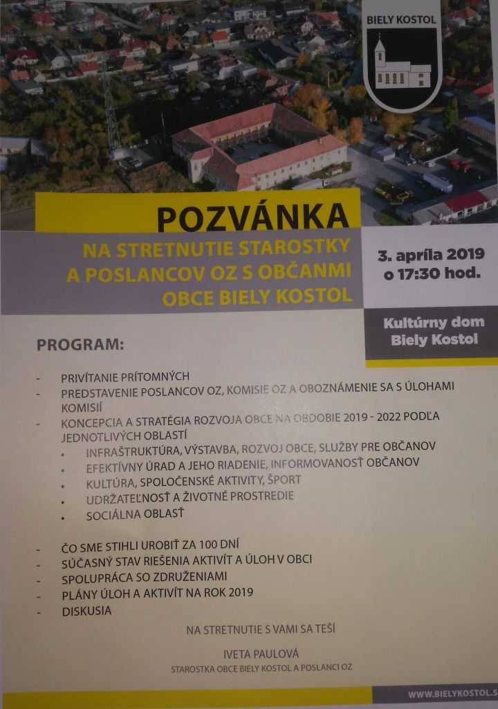 POZVÁNKA na stretnutie starostky a poslancov OZ s občanmi obce Biely Kostol