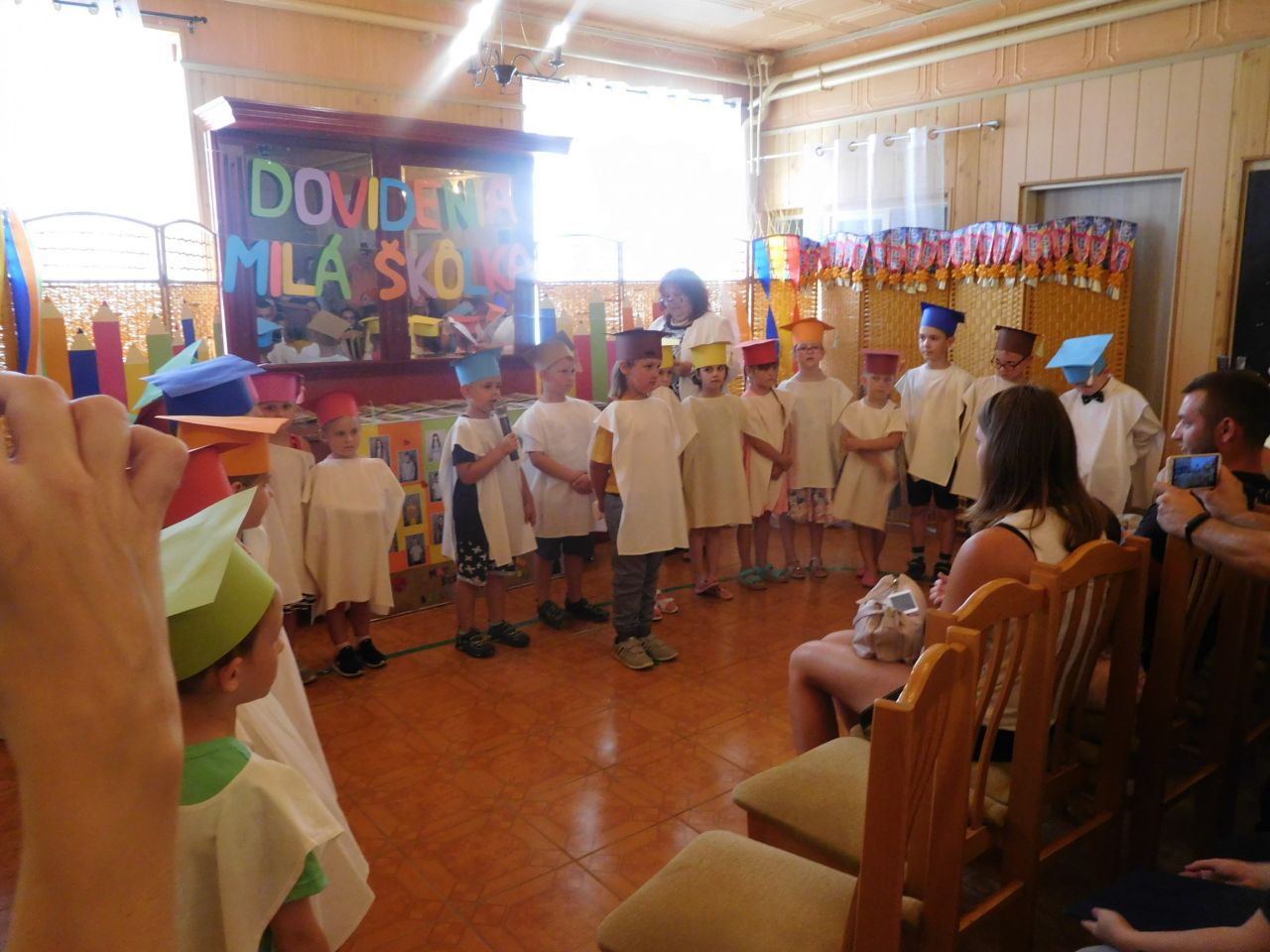 V piatok 21 júna sa vo vestibule kultúrneho domu konala rozlúčka našich škôlkarov - predškolákov. Pod vedením pani riaditeľky a triednej pani učiteľky si „Zrkadielka“ pripravili bohatý, vtipný a miestami aj dojímavý program, v ktorom bolo vidieť, ako z malých škôlkarov, vyrástli odhodlaní budúci prváčikovia, ktorí sú pripravení popasovať sa s písmenkami a číslicami. Predškoláci sa peknými a výstižnými slovami rozlúčili so škôlkou a zamestnancami škôlky a najmä ukázali svojím rodičom a rodinným príslušníkom, že už nie sú malými detičkami, ktoré sa potrebujú len hrať, ale tešia sa na to, že si onedlho budú vedieť sami prečítať obľúbené knižky.
