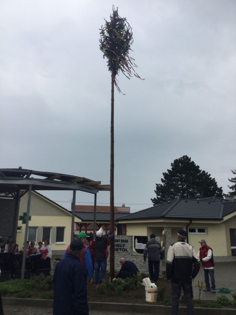 I napriek nepriaznivému počasiu sa májka v obci postavila. FS Bílokostočané k tomu zaspievali pár ľudových májových pesničiek a naši záhradkári sa pochlapili a májku postavili.